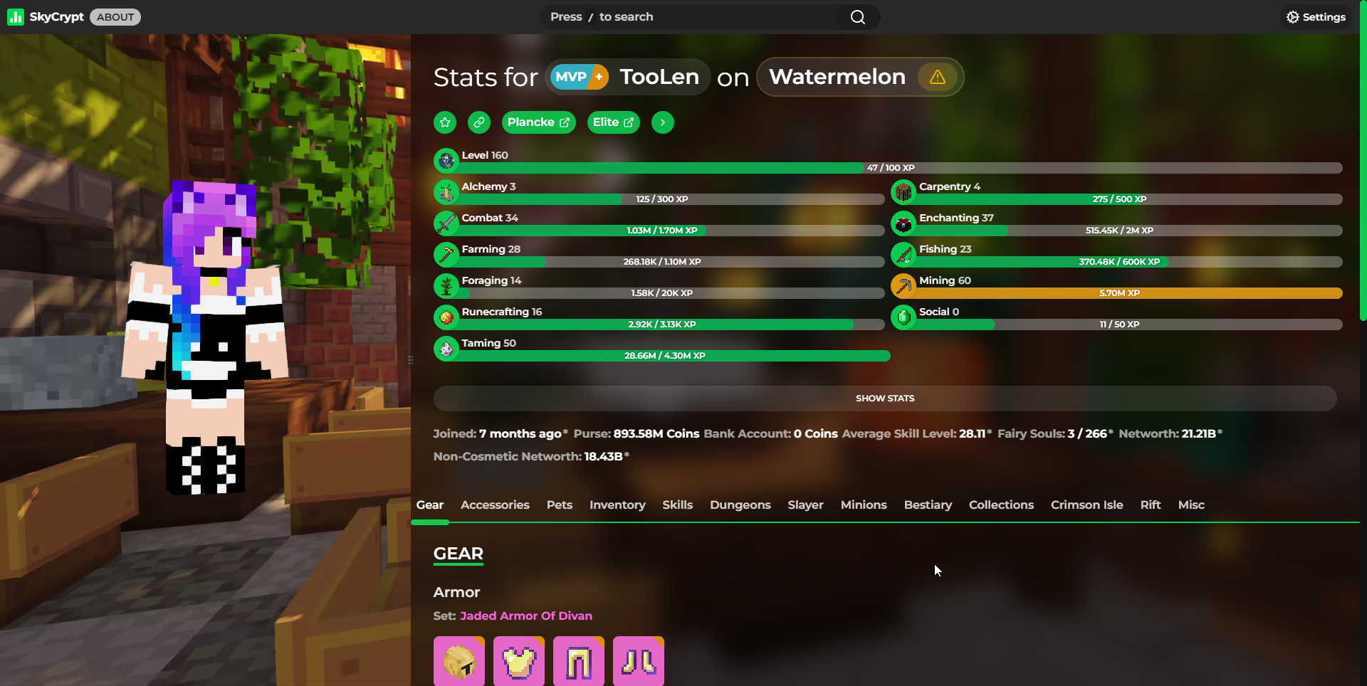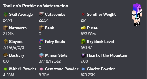 Detailed statistics - https://sky.shiiyu.moe/stats/TooLen/Watermelon#Gear ⚡
