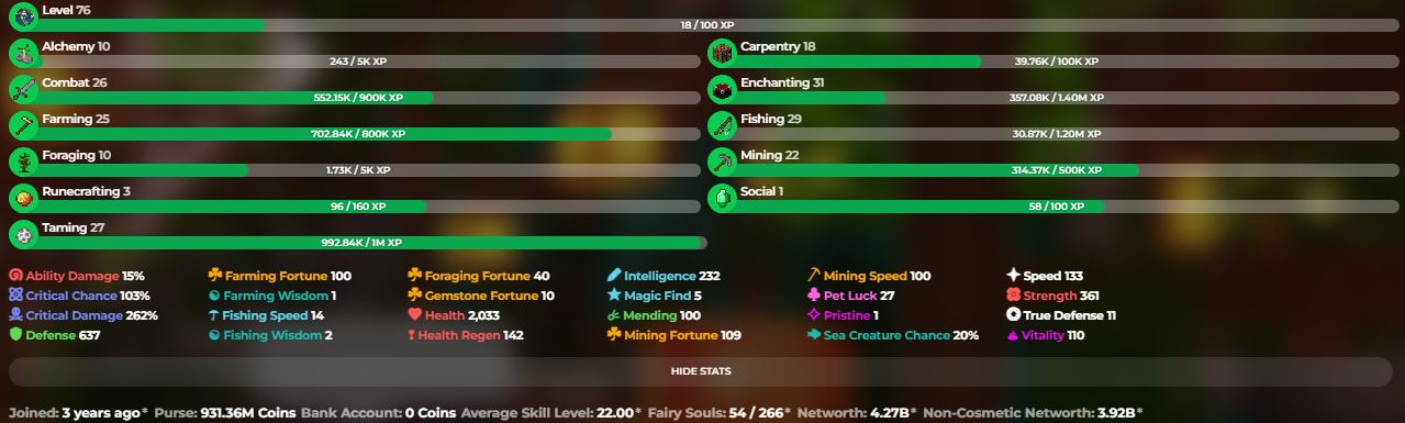 ✅❗️Solo-Coop | VIP | 76 SB lvl | 22.00 AVG | Cata 18 | 4.27B NW | Full accept | Hypixel SkyBlock❗️✅