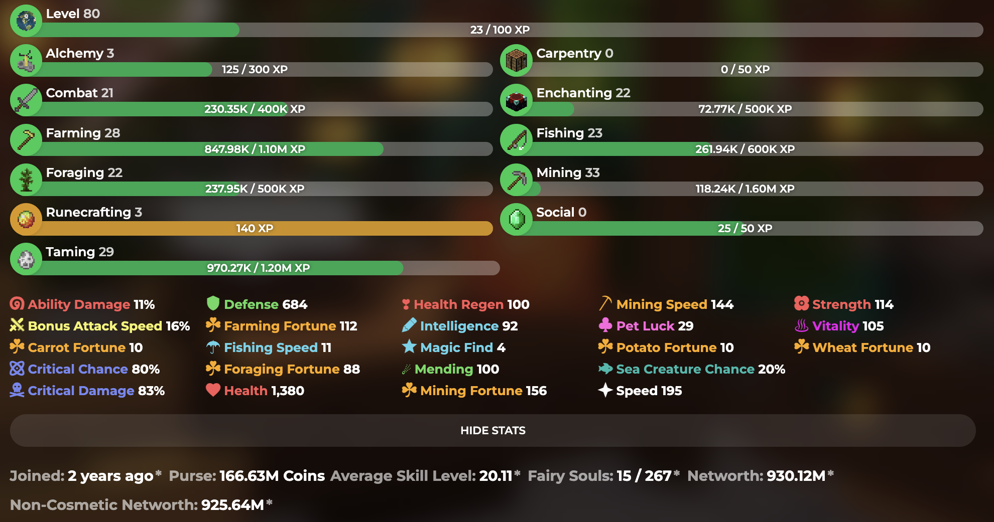 SkyBlock Lvl: 80.23