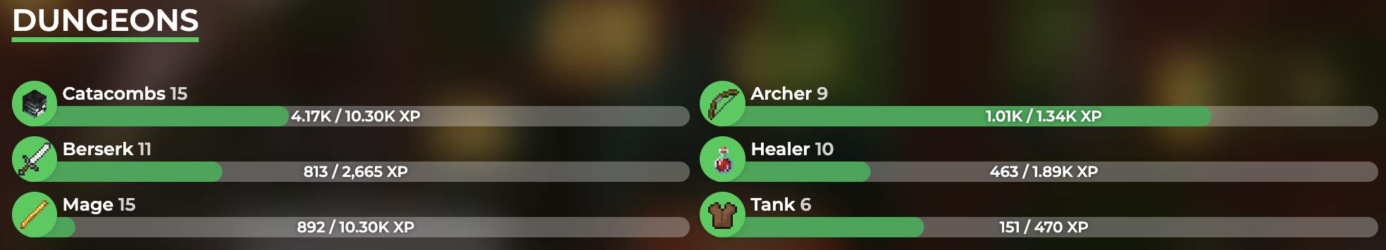 Slayers: Revenant - 3; Tarantula - 2; Sven - 3; Voidgloom - 0; Riftstalker - 0; Inferno - 0;
