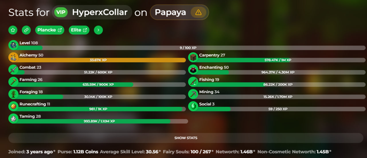 NICKNAME / PROFILE: HyperxCollar / https://sky.shiiyu.moe/stats/HyperxCollar/Papaya#Gear