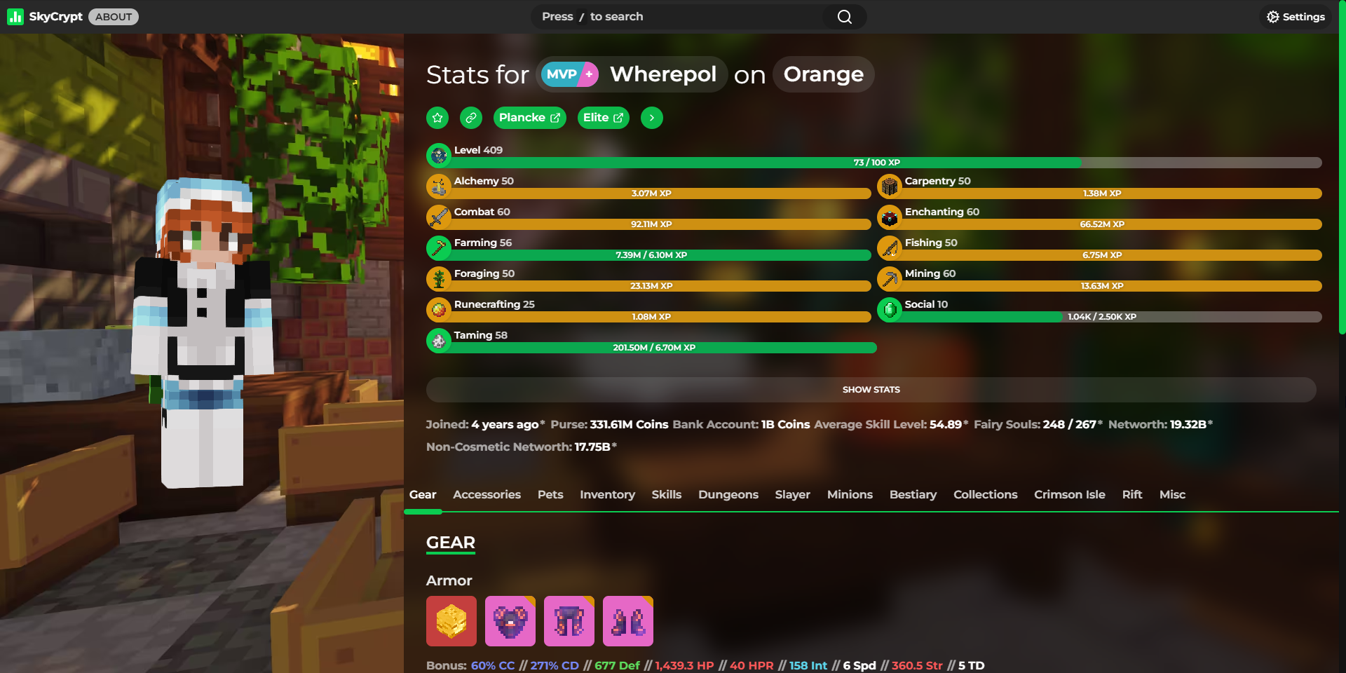 Detailed statistics - https://sky.shiiyu.moe/stats/Wherepol/Orange#Gear ⚡