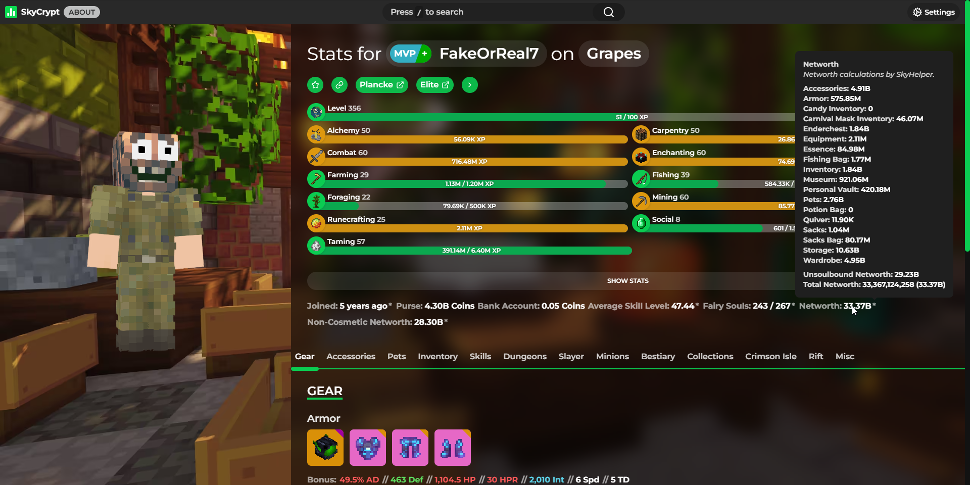 Detailed statistics - https://sky.shiiyu.moe/stats/FakeOrReal7/Grapes#Gear ⚡