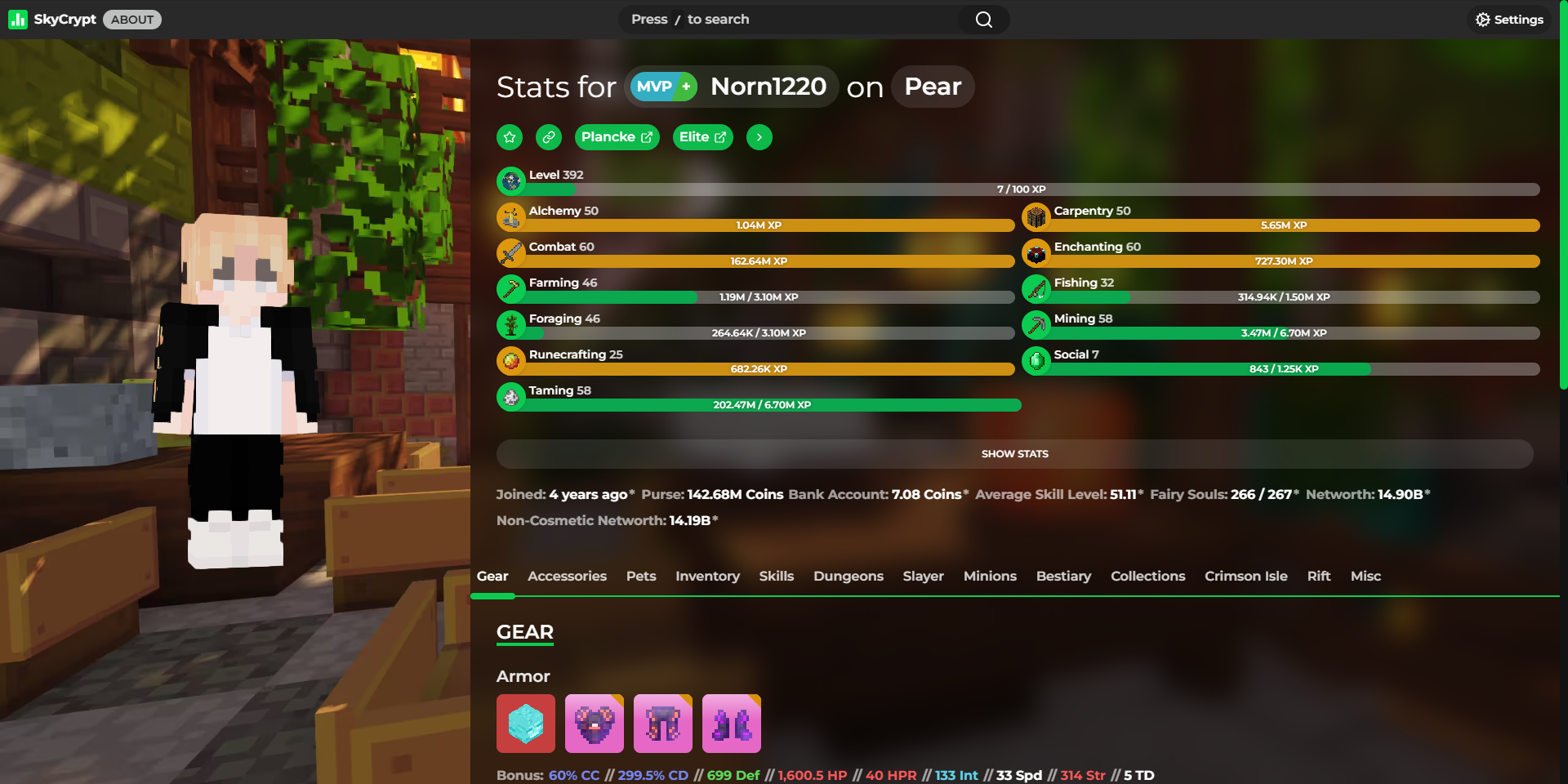Detailed statistics - https://sky.shiiyu.moe/stats/Norn1220/Pear#Gear ⚡