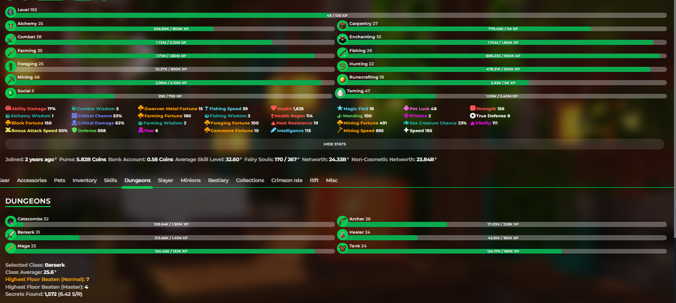 ❗️MVP+❗️24,4b (23,5b unsoul) Networth❗️193 LvL Skyblock❗️32 Cata❗️Hypixel skyblock❗️