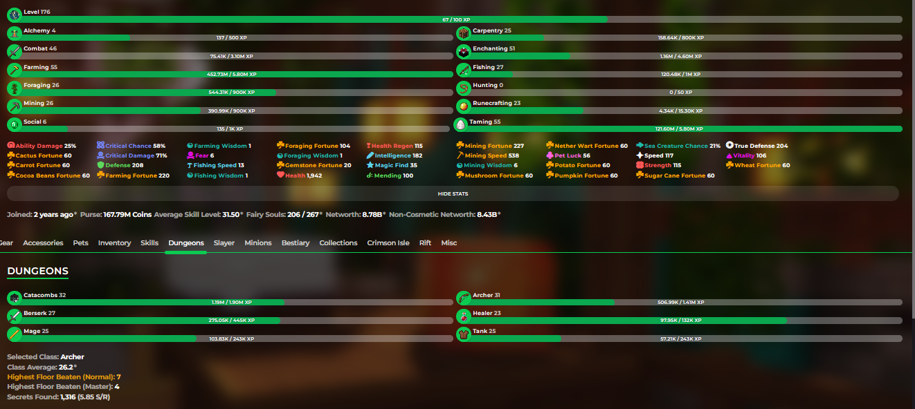 ❗️VIP❗️8.92b (4,56b unsoul) Networth❗️176 LvL Skyblock❗️32 Cata❗️Hypixel skyblock❗️