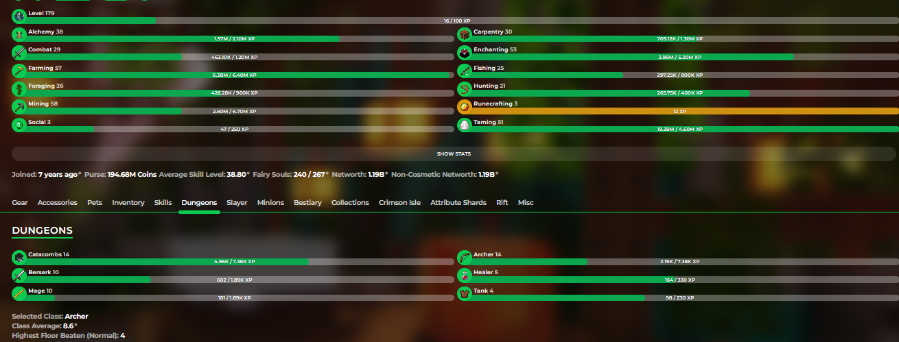 ❗️1,19b (857m unsoul) Networth❗️179 LvL Skyblock❗️14 Cata❗️Hypixel skyblock❗️