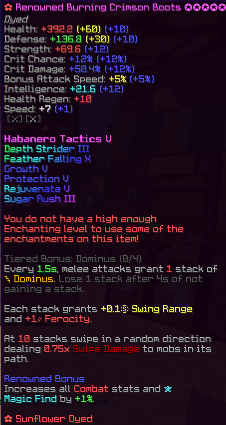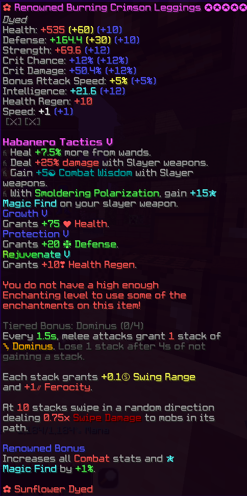 • 3/4 Mythic Renowned Burning Crimson Set w/ Habanero Tactics V, 30 Stars, Gemstone Slots Unlocked + Sunflower Dyed