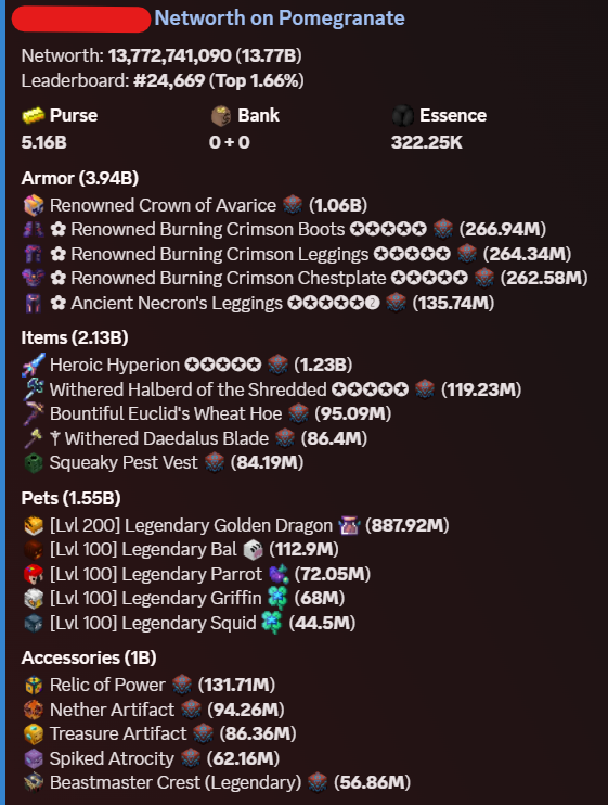 • Mythic Necrotic Storm’s Set w/ Wisdom V, 5 Wither Stars, Portal Dyed, Many enchants