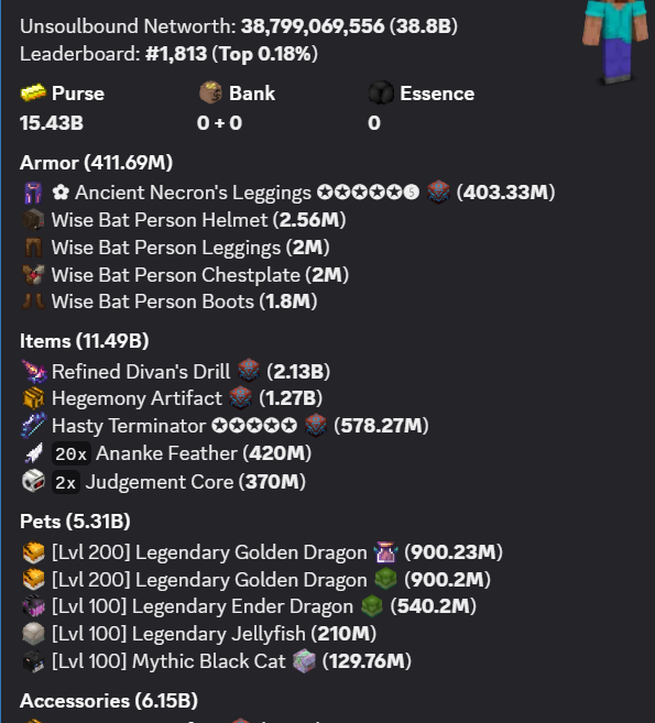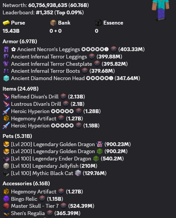 HYPIXEL SKYBLOCK PROFILE 60B NETWORTH / 38B UNSOULBOUND