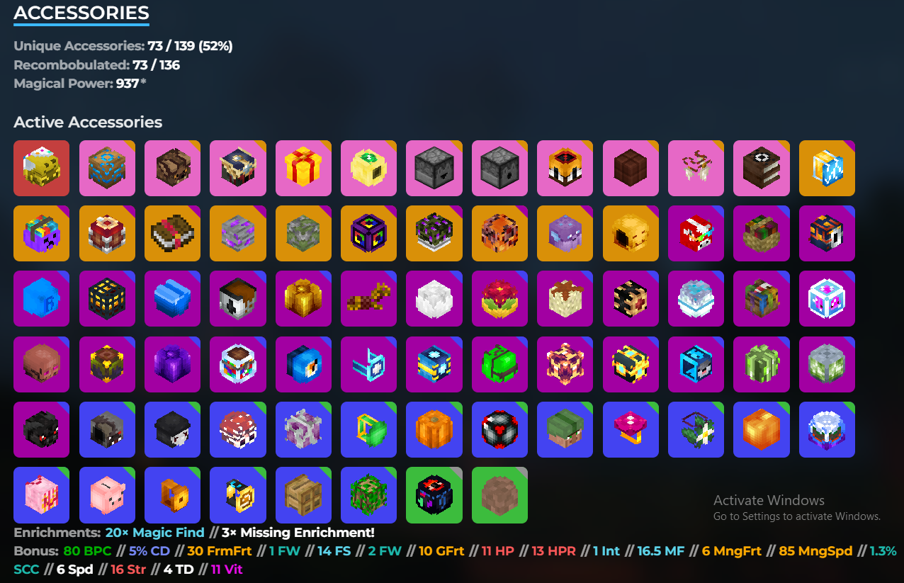 • Mythic Precise Terminator w/ 5 Master Stars, 5 Wither Stars, Soul Eater V, Snipe IV, Overload V, Taxophilite X, many enchants