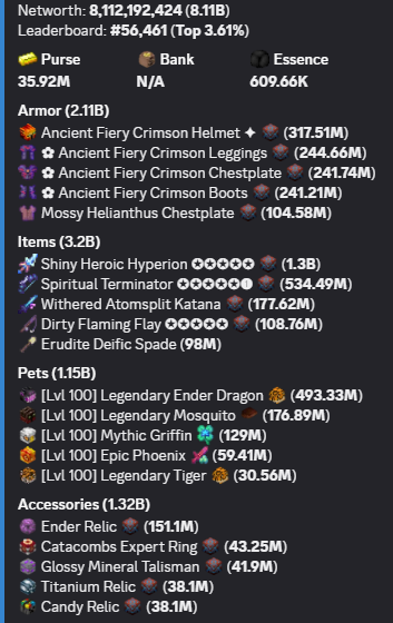 Reminder: This is a profile and you wont get any skills/HOTM/Catacombs levels, you will get a bit xp once you join (skills level up from 10 to 15, depends on profile and skyblock level up to 80, each profile is different so you can dm me to ask for starter level