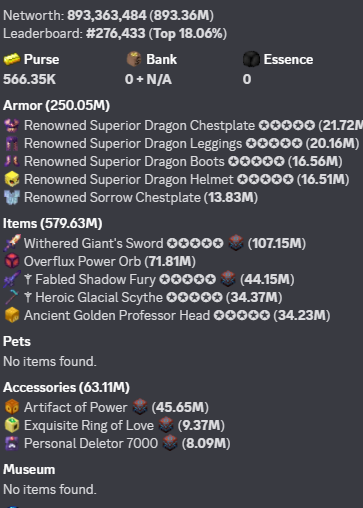 Selling a profile with 900m nw, 70m unsoulbound 830m soulbound.
