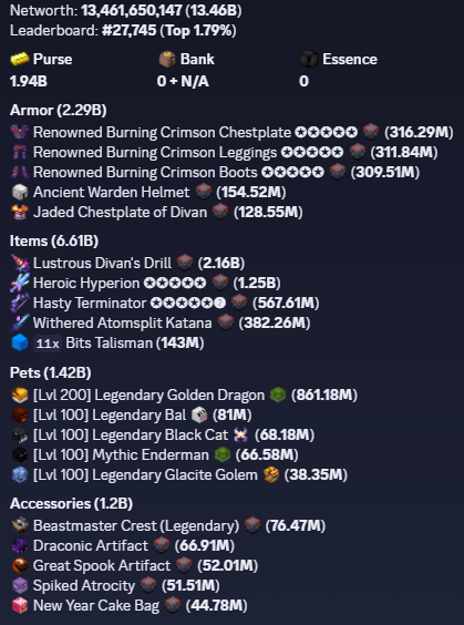 ❗️ HYPIXEL SKYBLOCK ISLAND / PROFILE WITH NETWORTH 13.46B ALL UNSOULBOUND | 0% BAN RISK ❗️